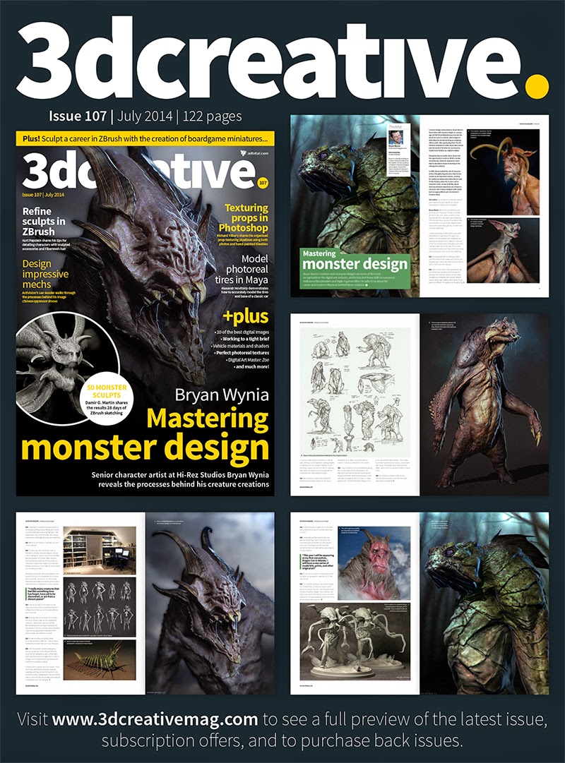 3D Creative was kind enough to interview me for their most recent issue. In the article I share some of my creative process, some of my adventures in the industry, and that my parents let me watch too many monster movies as a child. Head over and check it out! This issue is full of awesome ZBrush goodness!